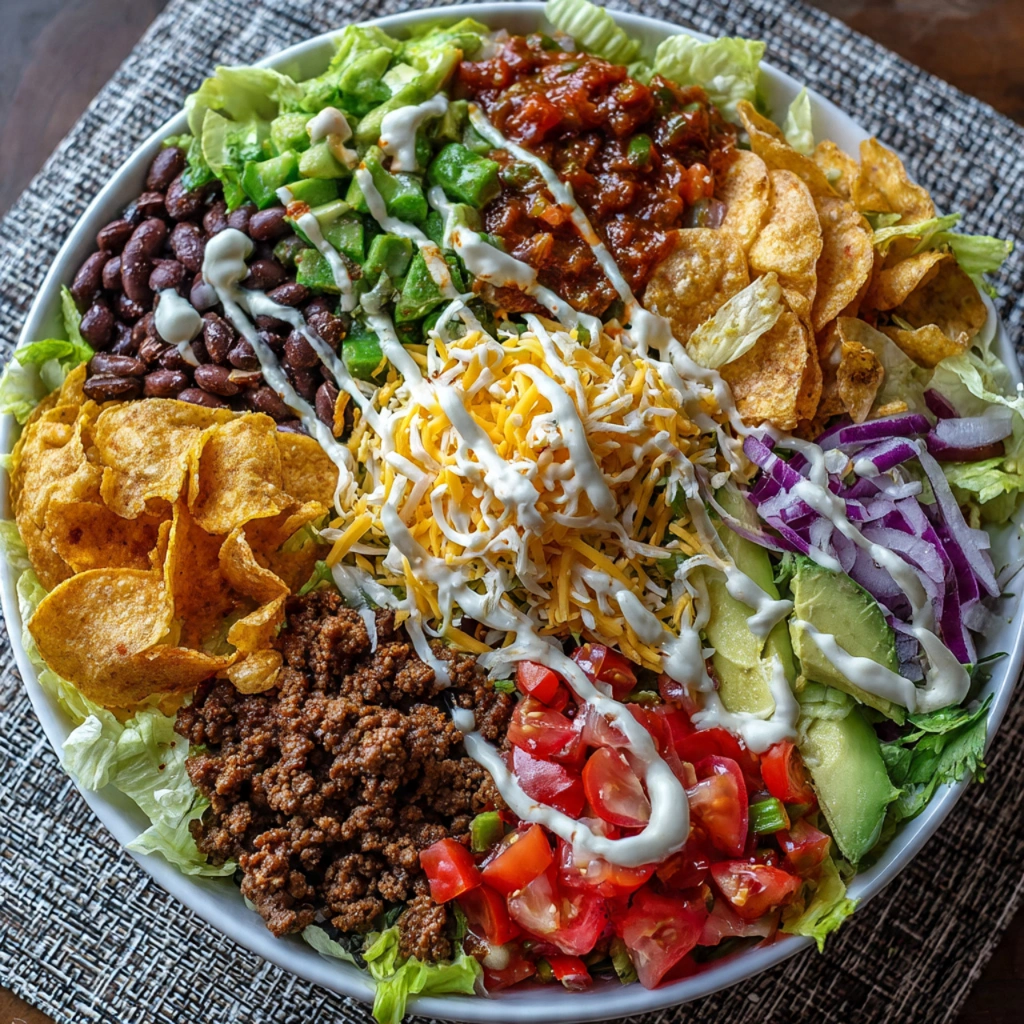 Taco salad may not be the fanciest dish, but it’s one of those meals that quietly earns its place in your regular rotation. It’s dependable, adaptable, and always satisfying in that honest, no-frills kind of way. If you give it a try, I’d love to hear how it turns out in your kitchen—what you added, what you changed, or even what went wrong and how you fixed it. That’s where the real cooking stories live, and those are always worth sharing.